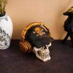 Scary showpiece of decoration skull wearing headphones music bar figures from karigaari will definitely bring in a divine serenity to your home decor. It is handcrafted from poly-resin which ensures and ethnic look as well as durability. This art piece is surely grab attention in your living room. It serves as a great gift, especially around religious celebrations and festivities. Each showpiece is diligently handcrafted by skilled artisans from karigaari using various traditional technique.